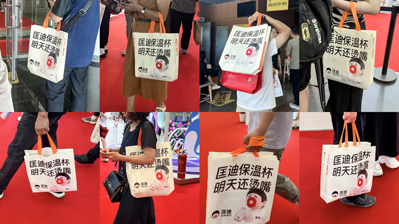 不僅如此,我們還讓所有參展者成為我們的宣傳大使。我們?cè)O(shè)計(jì)了一款展會(huì)專用的挎包,作為核心道具發(fā)送給參展者,走到哪兒都能看到背著匡迪挎包的人群。甚至有些人把它當(dāng)成了日常挎包。