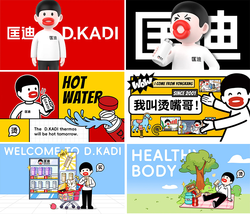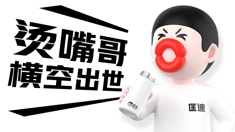 而產品就是我們最大的免費媒體,當顧客手里拿著杯子的時候,他得知道它是匡迪的。所以我們首先要讓匡迪的杯子符號化。我們將燙嘴哥應用于匡迪的產品。