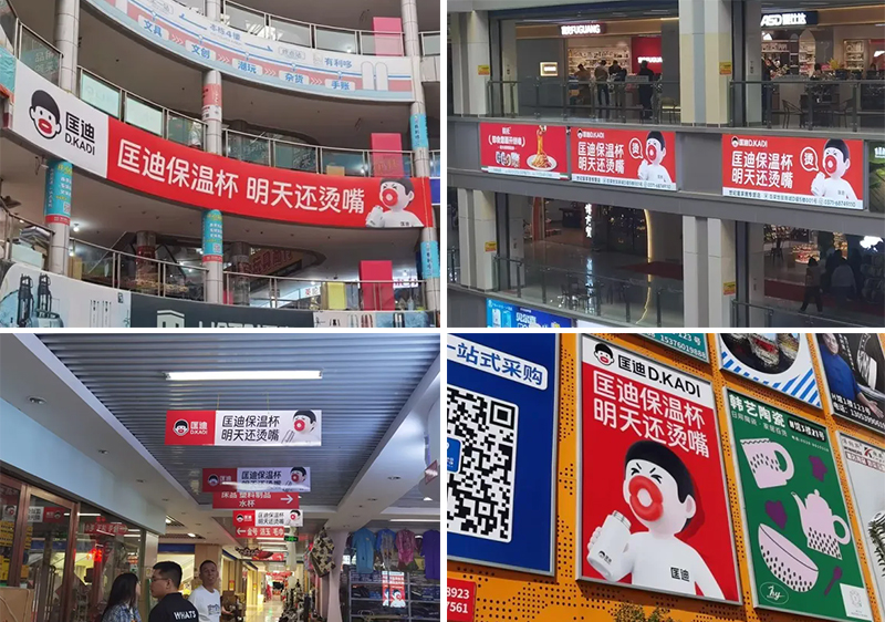 不止如此,我們還圍繞門店,在批發市場周邊投放了商圈廣告,甚至打造了“品牌打卡墻”,讓匡迪的形象低成本地“無處不在”。